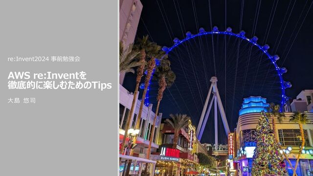 「re:Invent2024 事前勉強会 (有志で開催)」と「re:Invent2024 事前勉強会 Online (有志で開催)」で発表した資料 https://connpass.com/event/328730/ https://connpass.com/event/335331/