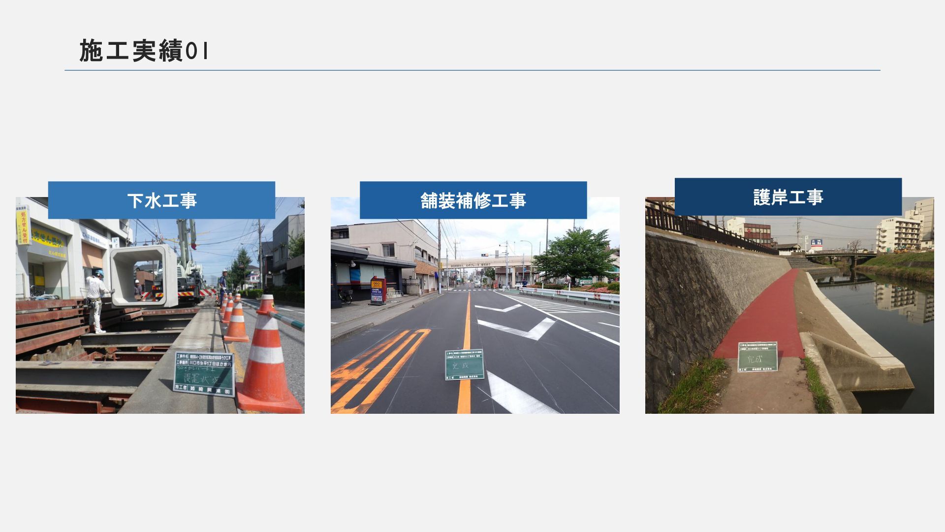 施工実績01 下水工事 舗装補修工事 護岸工事