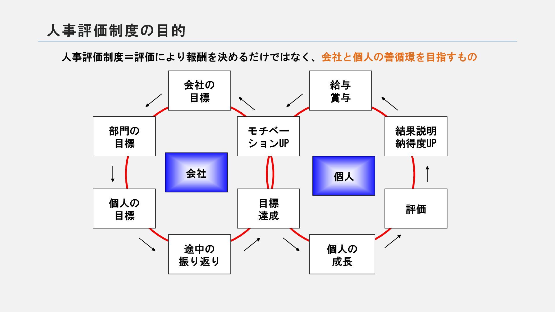 人事評価制度の目的 給与 賞与 結果説明 納得度UP 評価 目標 達成 個人 個人の
