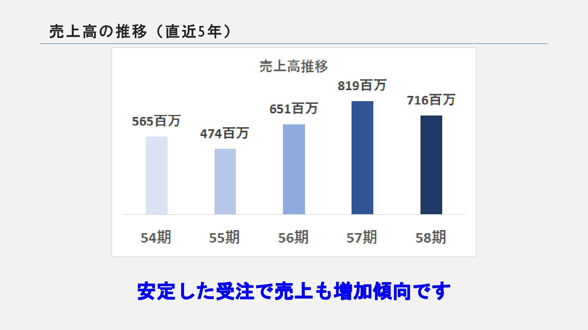 売上高の推移(直近5年) 安定した受注で売上も増加傾向です