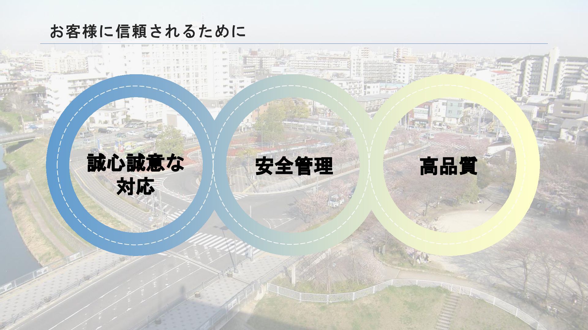 お客様に信頼されるために 誠心誠意な 対応 安全管理 高品質
