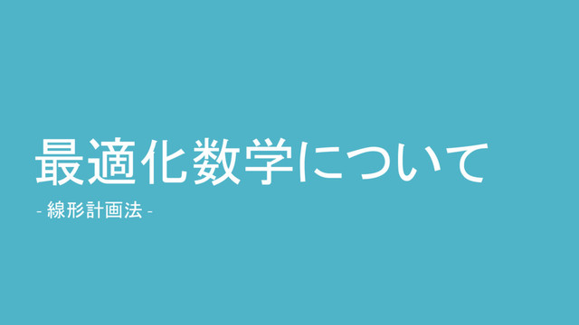 目次 線形計画とは 可能領域 線形計画の基本定理 スラック変数 シンプレックス法 おまけ:PULPによる線形計画