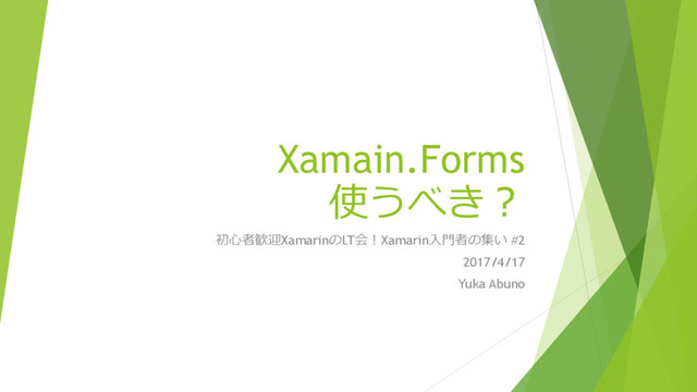 Xamain.Forms 使うべき? 初心者歓迎XamarinのLT会!Xamarin入門者の集い #2 2017/4/17 Yuka Abuno