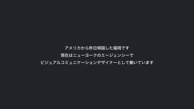 ΞϝϦΧ͔Βࡢؼࠃͨ͠ԬͰ͢ ݱࡏχϡʔϤʔΫͷΤʔδΣϯγʔͰ ϏδϡΞϧίϛϡχέʔγϣϯσβΠφʔͱͯ͠ಇ͍͍ͯ·͢