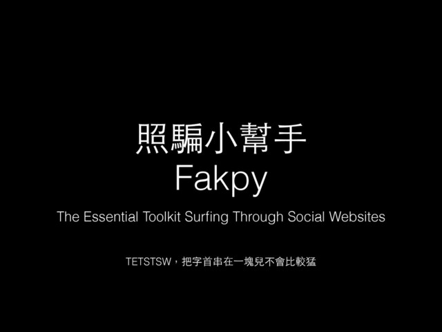 照騙⼩小幫⼿手 Fakpy The Essential Toolkit Surfing Through Social Websites TETSTSW,把字⾸首串在⼀一塊兒不會⽐比較猛