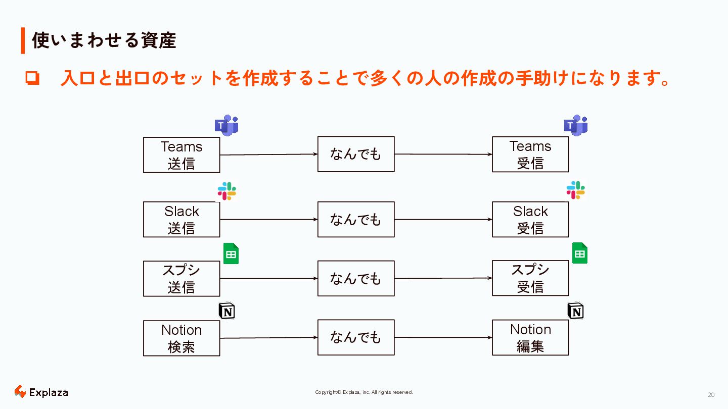 20 Copyright© Explaza, inc. All rights reserved. 使いまわせる資産 Slack 送信