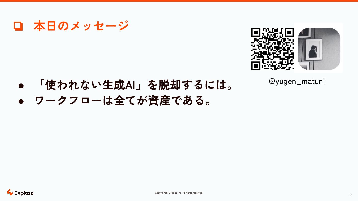 3 Copyright© Explaza, inc. All rights reserved. ❏ 本日のメッセージ •