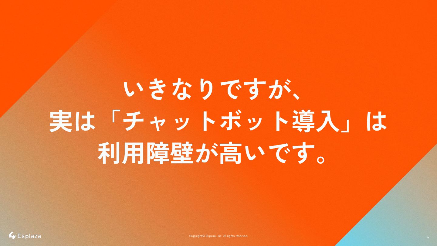 4 4 Copyright© Explaza, inc. All rights reserved. いきなりですが、 実は「チャットボット導入」は