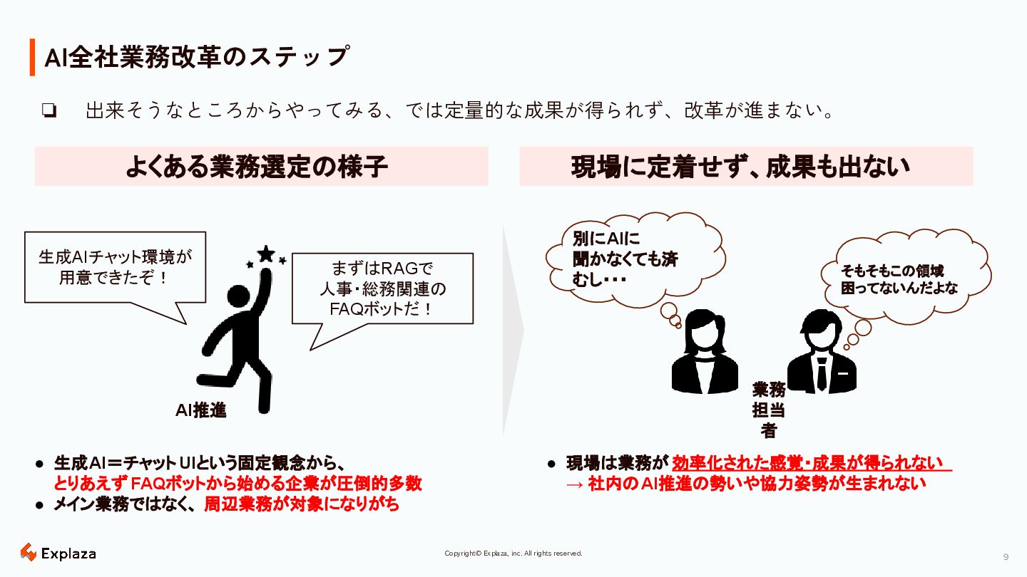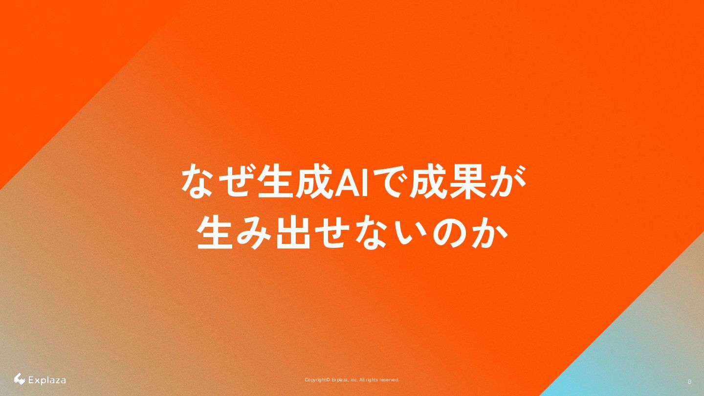 8 8 Copyright© Explaza, inc. All rights reserved. なぜ生成AIで成果が 生み出せないのか
