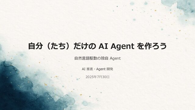 ⾃分(たち)だけの AI Agent を作ろう ⾃然⾔語駆動の独⾃ Agent AI 推進・Agent 開発 2025年7⽉30⽇