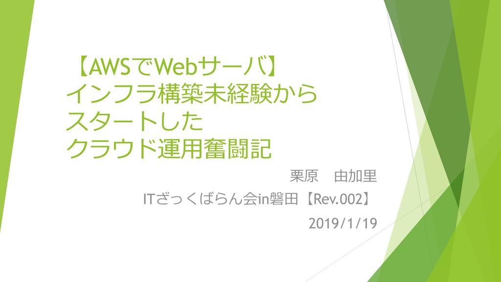 【AWSでWebサーバ】 インフラ構築未経験から スタートした クラウド運用奮闘記 栗原 由加里 ITざっくばらん会in磐田【Rev.002】 2019/1/19