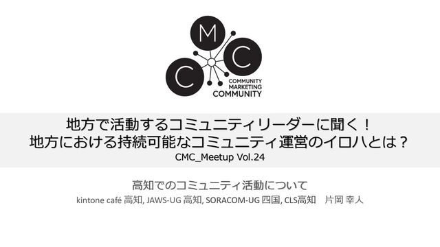 地方で活動するコミュニティリーダーに聞く! 地方における持続可能なコミュニティ運営のイロハとは? CMC_Meetup Vol.24 高知でのコミュニティ活動について kintone café 高知, JAWS-UG 高知,