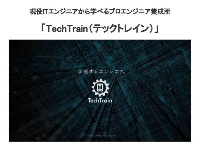 「エンジニア版ライザップ」 プロのエンジニアを目指す30歳以下の学生、社会人向けサービスです。 サービスは現在無料でご利用いただけます。 動画説明をご覧になりたい方は↓ https://youtu.be/pDtrP0szaZI