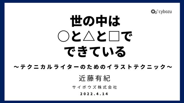 イラストは、テキストだけでは伝わりにくいものを、視覚的にわかりやすくてくれる、とても効果的な手法です。ただどうしても、イラストを描くことはハードルが高く感じてしまいがちです。でも大丈夫!世の中のものはだいたい○と△と□でできているのです。本セッションでは、テクニカルライター向けに簡単にイラストを描けるテクニックをご紹介します。