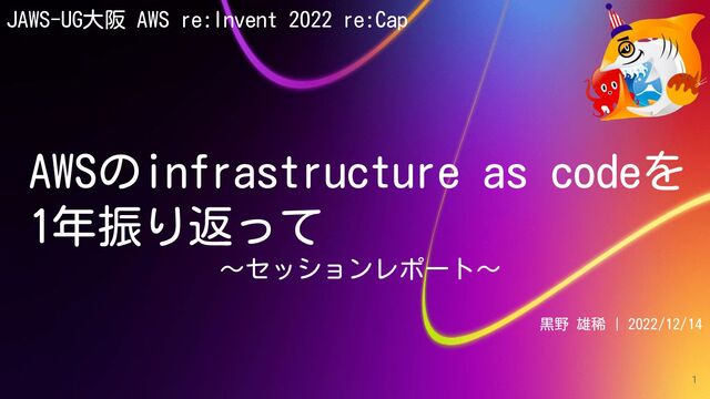 AWSのinfrastructure as codeを 1年振り返って ~セッションレポート~ 黒野 雄稀 | 2022/12/14 1