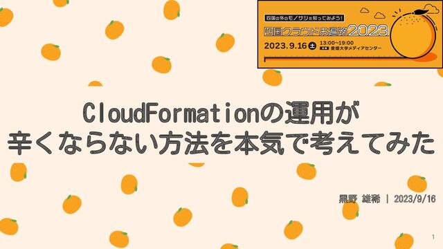CloudFormationの運用が 辛くならない方法を本気で考えてみた 黒野 雄稀 | 2023/9/16 1
