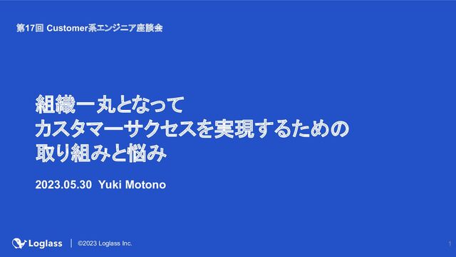 1 ©2023 Loglass Inc. 組織一丸となって カスタマーサクセスを実現するための 取り組みと悩み 2023.05.30 Yuki Motono