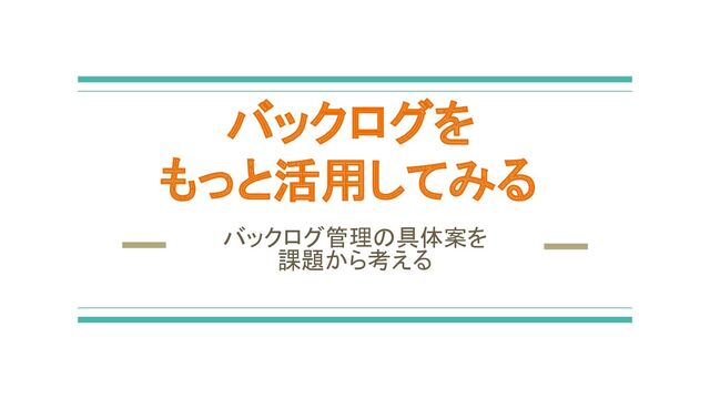 スクラムのバックログ管理に迷っていたなら、具体案を通じて改善案の解像度を高くしてもらうことを目的とした資料。 チームでスクラムを導入してみたけど、上手く回せていない方にも参考になると思います。