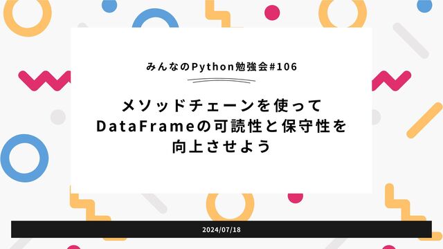 メソッドチェーンを使って DataFrameの可読性と保守性を 向上させよう みんなのPython勉強会#106 2024/07/18