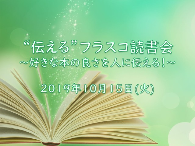 2019年10月15日、"伝える"フラスコ読書会のMCスライドです。「読書を行動に変え、人生をより良くする」がコンセプトの読書会です!