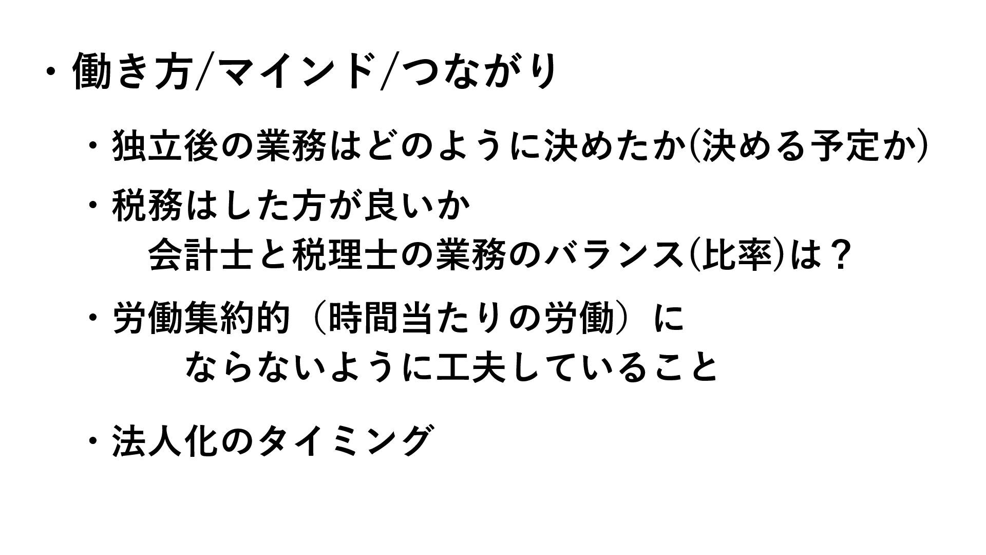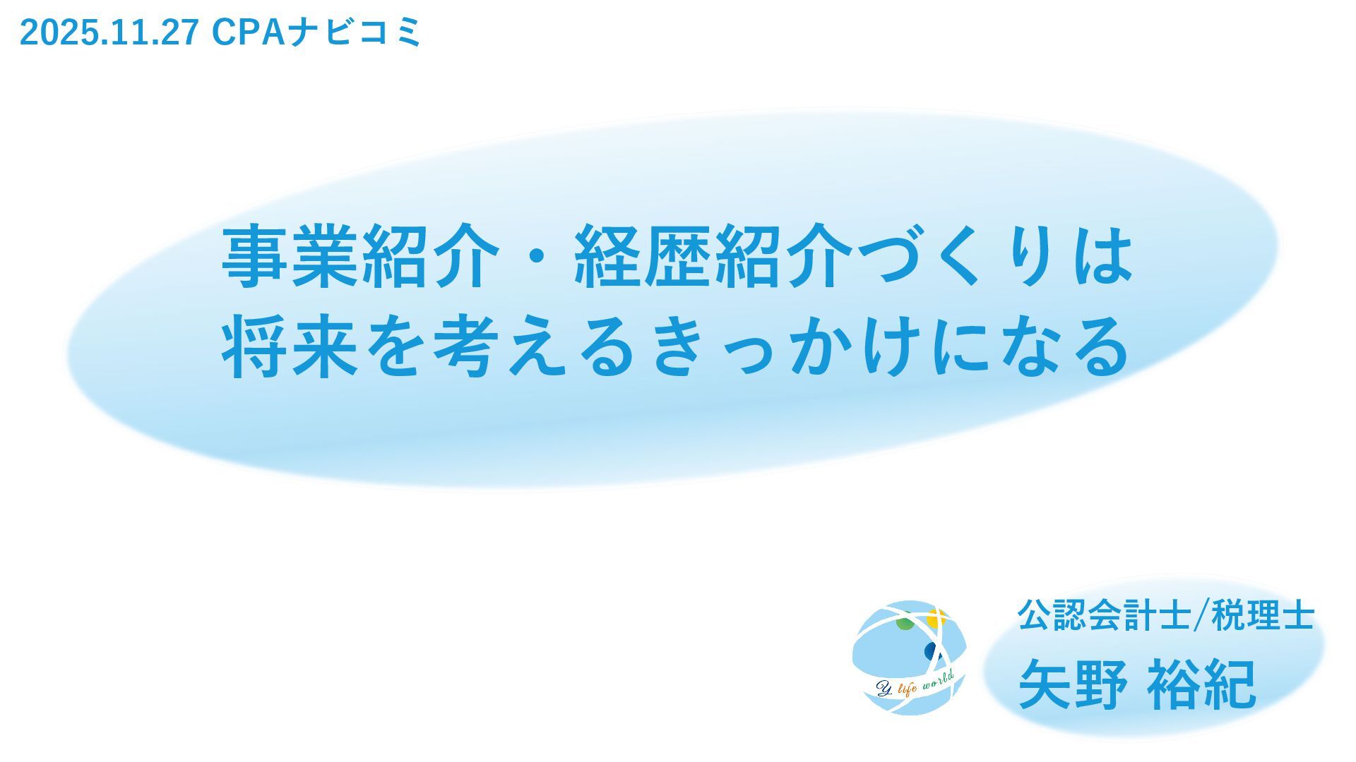 2025年11月27日、公認会計士のコミュニティ、CPAナビコミのフリーランス会計士交流会での登壇資料です。フリーランス会計士としての取り組みの一例として、矢野の現在の事業紹介をさせていただきました。(これまでの歩みは時間の都合でその場ではカット)