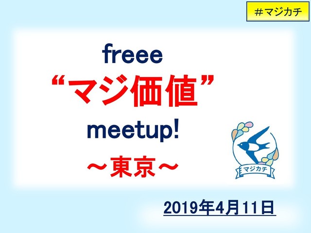 2019年4月11日freee"マジ価値"meetup!東京にて、#マジカチ東京の歩き方についてLTしました!これからもっともっとたくさんのfreeeファン会計人が集まって、価値を磨き合える場にできたらと思います!