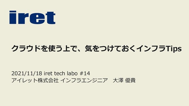 クラウドを使う上で、気をつけておくインフラTips 2021/11/18 iret tech labo #14 アイレット株式会社 インフラエンジニア ⼤澤 優貴