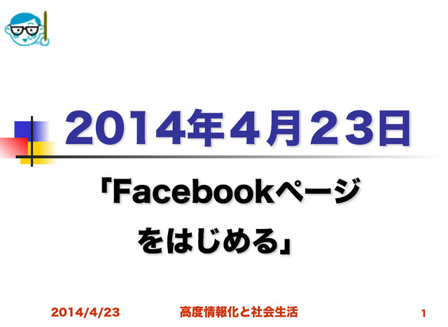 ߴใԽͱࣾձੜ׆ ʲॏཁʳ'BDFCPPLϖʔδͷ໊લ ▪ ՝ͷϖʔδʹඞͣ ࣗͷࣈͷϑϧωʔϜΛೖΕΔ͜ͱɻ ྫʮ˓˓ͷߨٛ՝ʢߴใԽͱࣾձੜ׆༻ʣʯ ͱ͔ɻ ɹ໊લ͕ೖ͍ͬͯΕଞͷจࣈྻԿͰΑ͍ɻ ʮ˓˓ͷϖʔδʯɺʮ˓˓ͷϊʔτʯͱ͔ɻ ▪