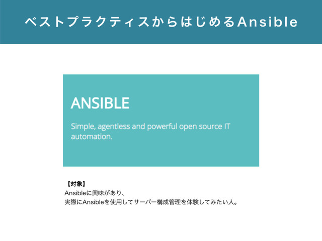 GitHub: https://github.com/yukihirai0505/ansible-best-practice-hands-on ハンズオン記事: http://qiita.com/yukihirai0505/items/8fae0815766920e1f5e4
