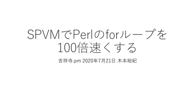 SPVMでPerlのforループを 100倍速くする 吉祥寺.pm 2020年7月21日 木本裕紀