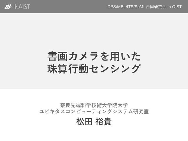 松田裕貴: “書画カメラを用いた珠算行動センシング,” 電子情報通信学会技術研究報告, センサネットワークとモバイルインテリジェンス研究会(SeMI), Vol.123, No.31, pp.70-75, 沖縄県国頭郡, 2023年5月.