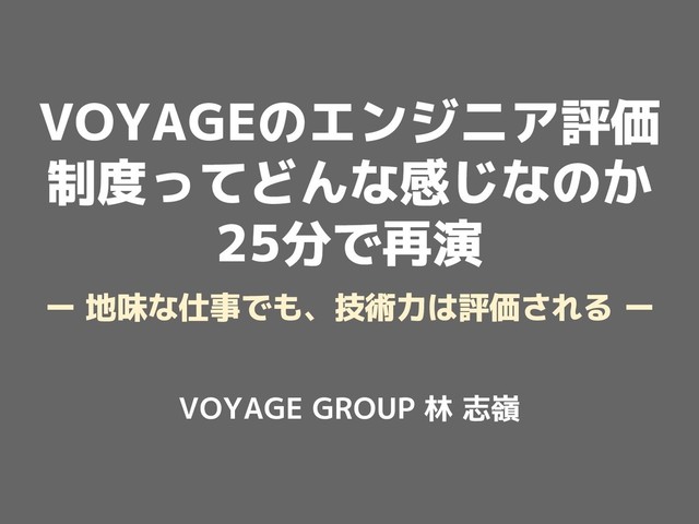 VOYAGE GROUPでは半年に1度、プレゼン&質疑応答形式のエンジニア評価制度である技術力評価会を行っています。
