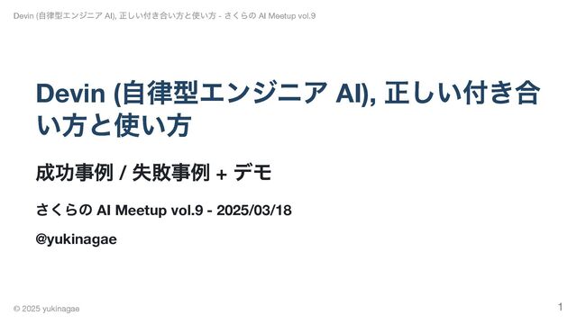 Devinは、コーディング・デバッグ・テスト・レビューなどをこなす自律型エンジニアAIです。本セッションでは、Devinの基本機能、成功・失敗事例を紹介し、実務での活用ポイントを解説します。
