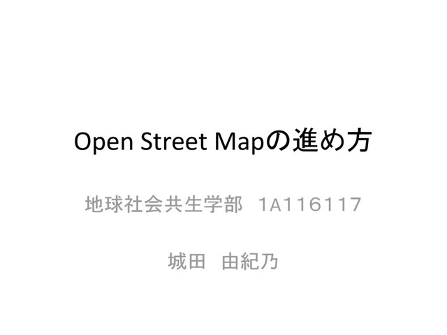 Open Street Mapの進め方 地球社会共生学部 1A116117 城田 由紀乃