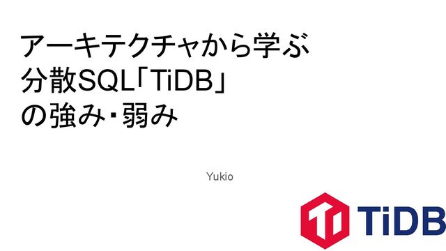 アーキテクチャから学ぶ 分散SQL「TiDB」 の強み・弱み Yukio