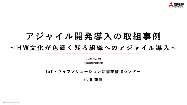 2 9 IoT・ライフソリューション新事業推進センター 小川 雄喜 アジャイル開発導入の取組事例 ~ H W 文 化 が 色 濃 く 残 る 組 織 へ の ア ジ ャ イ ル 導 入 ~