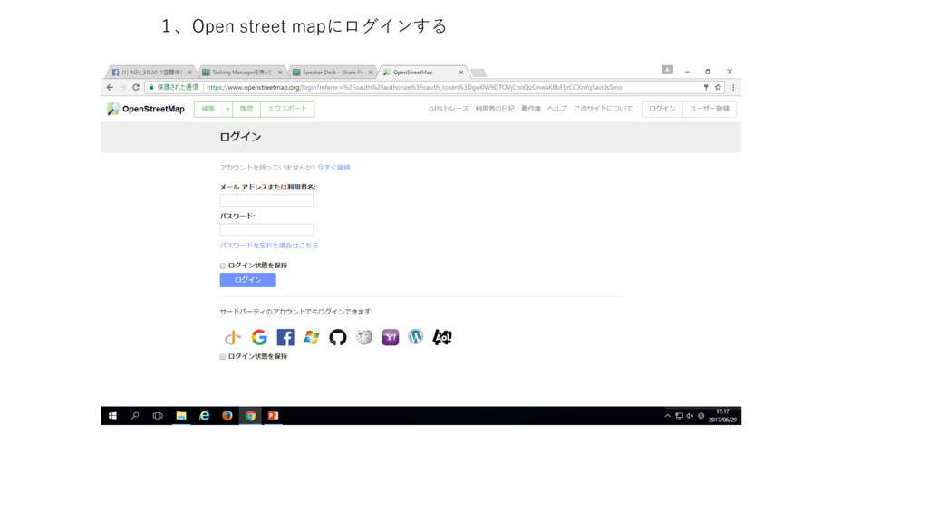 1、Open street mapにログインする