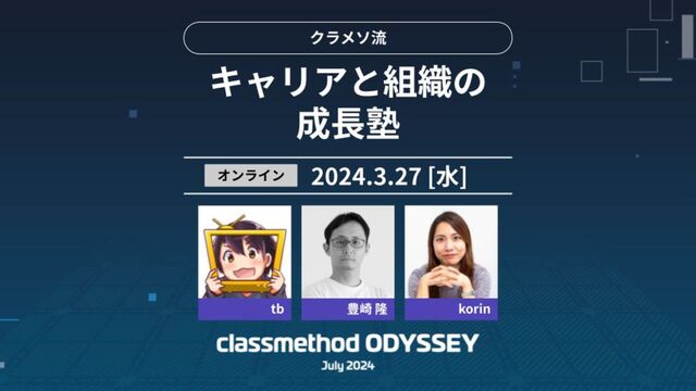 クラメソ流 キャリアと組織の成長塾 とは DevelopersIO や Zenn を運営しているクラスメソッド株式会社の人事メンバーが主催する勉強会です。 この勉強会では、採用、人材育成、組織開発など人事にまつわる幅広いテーマを取り扱っていく予定です。 初回は"キャリアの転機"をテーマにした勉強会です。