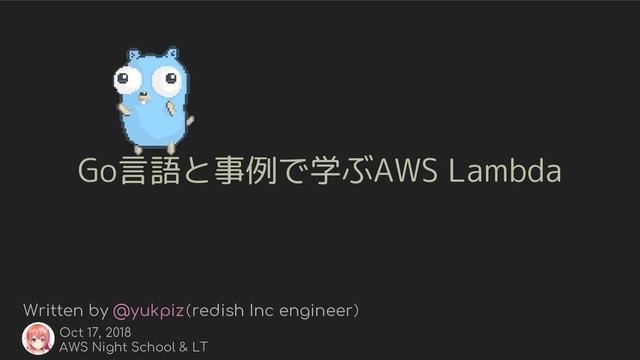 Go言語と事例で学ぶAWS Lambda Written by @yukpiz(redish Inc engineer) Oct 17, 2018