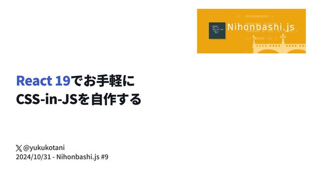 React 19でお手軽に CSS-in-JSを自作する @yukukotani 2024/10/31 - Nihonbashi.js #9