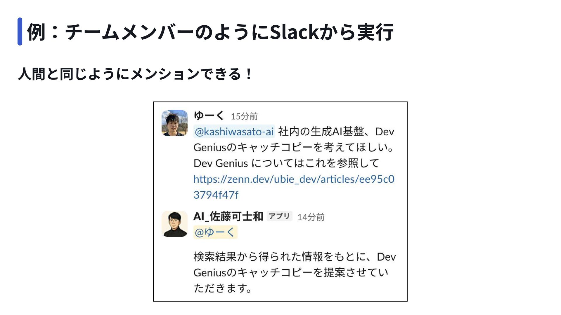 例:チームメンバーのようにSlackから実行 人間と同じようにメンションできる!