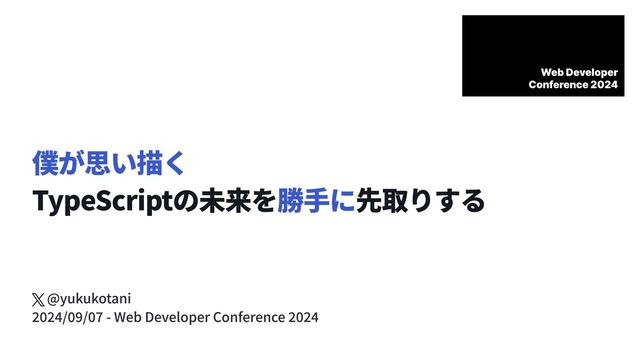 僕が思い描く 勝手に TypeScriptの未来を 先取りする @yukukotani 2024/09/07 - Web Developer Conference