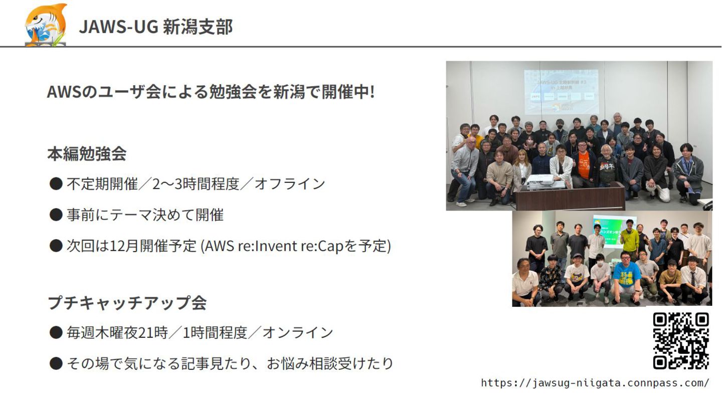 いかがでしたでしょうか? 新潟にも様々なTech系コミュニティが存在します。 皆さんの興味を惹くコミュニティもあるかもしれません。 気になるコミュニティがございましたら、是非参加してみてください!