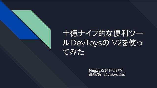 十徳ナイフ的な便利ツー ルDevToysの V2を使っ てみた Niigata5分Tech #9 髙橋悠 @yukyu2nd