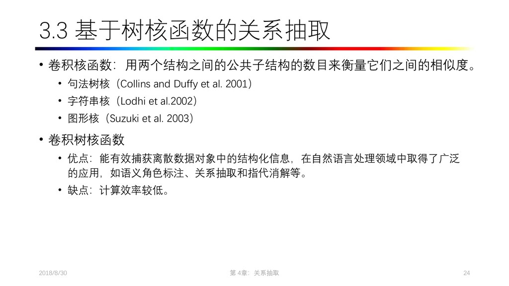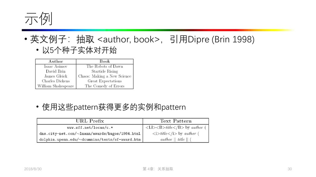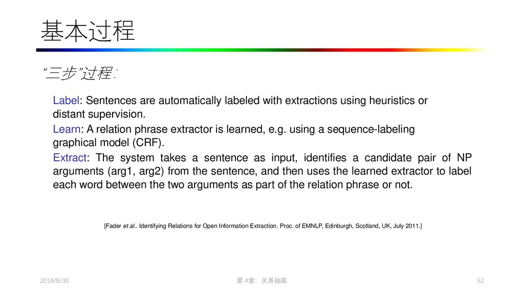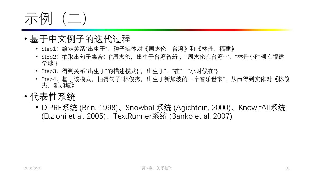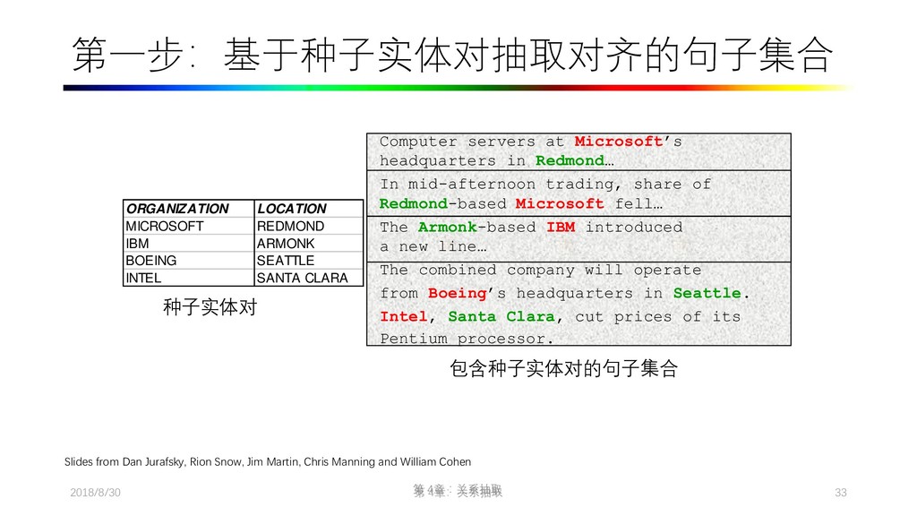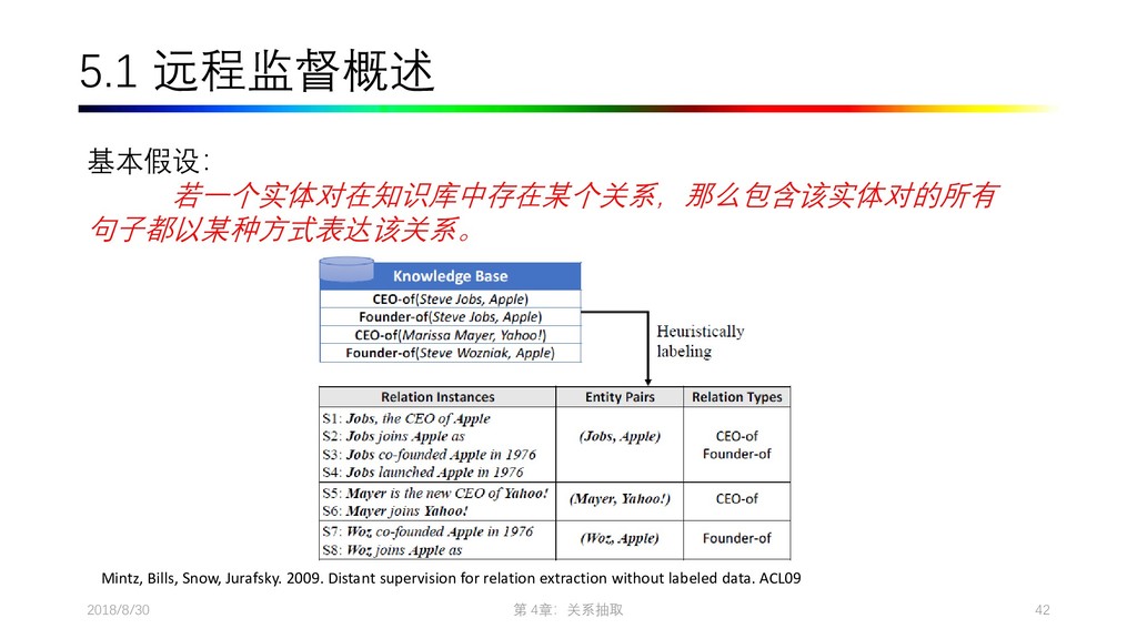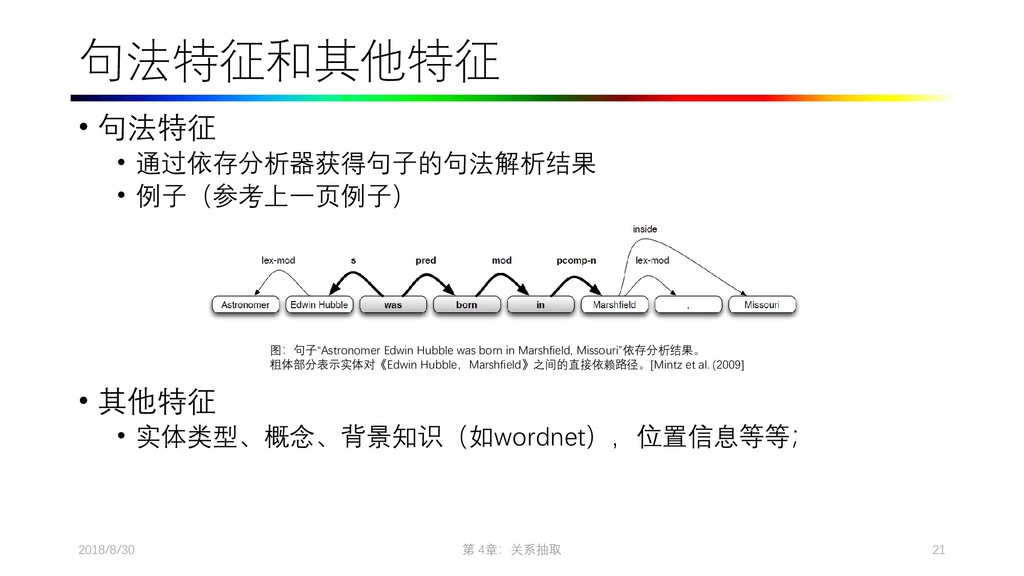 2009. Distant supervision for relation extraction without labeled data. In Proceedings of the Joint Conference of the 47th Annual Meeting of the ACL and the 4th International Joint Conference on Natural Language Processing of the AFNLP: Volume 2-Volume 2. ACL, pages 1003–1011. • Collins M, Duffy N, Park F. Parsing with a single neuron: Convolution kernels for natural language problems[J]. 2001. • Lodhi H, Saunders C, Shawe-Taylor J, et al. Text classification using string kernels[J]. Journal of Machine Learning Research, 2002, 2(Feb): 419-444. • [Eugene Agichtein and Luis Gravano. Snowball: Extracting Relations from Large Plain-Text Collections, Fifth ACM Conference on Digital Libraries. San Antonio, TX, USA, 2000. Page 3.] • Sergey Brin, Extracting Patterns and Relations from the World Wide Web, Proc. of International Workshop on the Web and Databases, 1998. • [Agichtein and Gravano, 2000] E. Agichtein and L. Gravano. Snowball: Extracting relations from large plain-text collections. In Proceedings of the Fifth ACM International Conference on Digital Libraries, 2000. • [Downey et al., 2005] D. Downey, O. Etzioni, and S. Soderland. A Probabilistic Model of Redundancy in Information Extraction. In Proc. of IJCAI, 2005. • [Cafarella et al., 2006] Michael J. Cafarella, Michele Banko, and Oren Etzioni. Relational web search. Technical Report 06-04-02, University of Washington, 2006. • Sawyer S, Krause J, Guschanski K, et al. Temporal patterns of nucleotide misincorporations and DNA fragmentation in ancient DNA[J]. PloS one, 2012, 7(3): e34131.