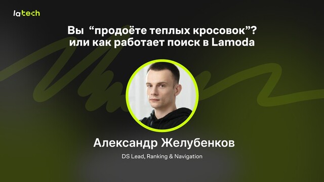 пользователей ежедневно Особенности fashion-сегмента: простой язык запросов, короткие описания товаров и узкая предметная область Основная логика поиска сосредоточена в двух модулях: Search Query Analyzer - отвечает за разбор и трансформацию запроса пользователя в фильтрующий запрос к Elasticsearcr Search Enricher - отвечает за логику индексации товара Развитие поисковой системы важно для Lamoda, ведь помогая пользователям находить товары их мечты, мы позитивно влияем на показатели бизнеса