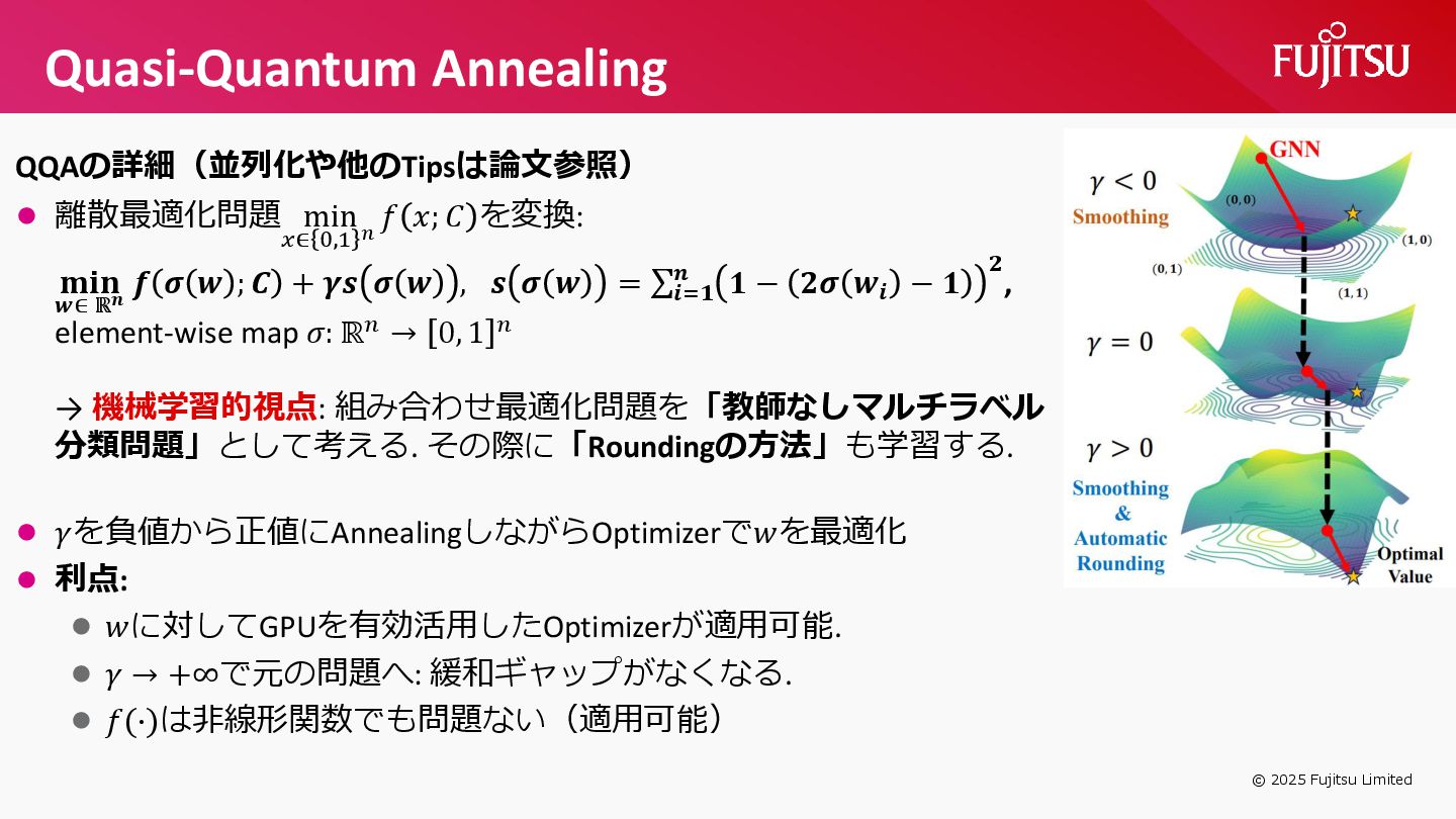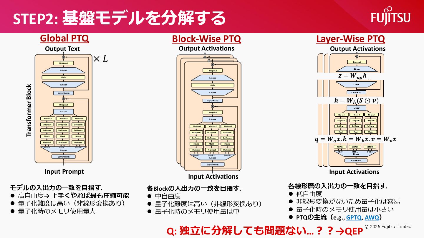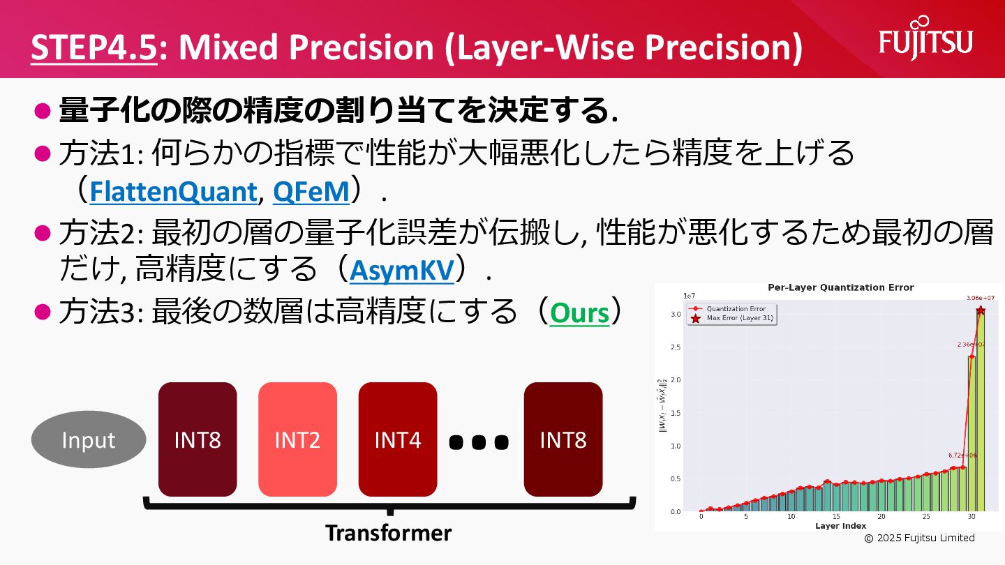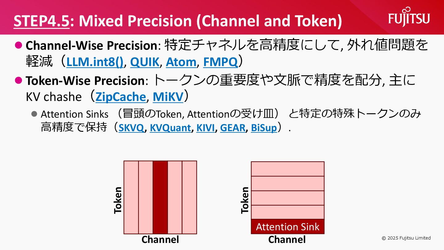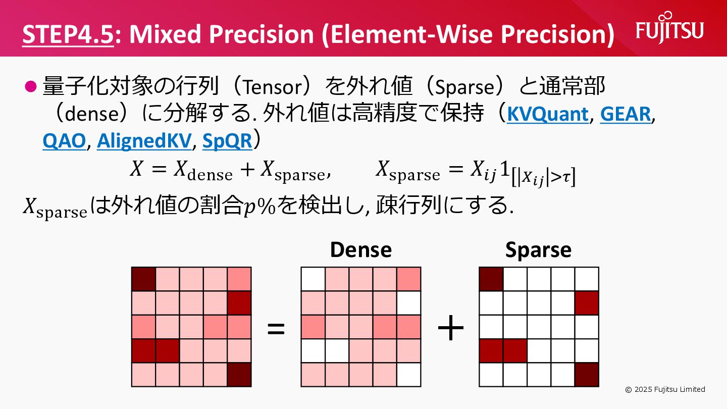 近年, LLM(Large Language Model)の大規模化に伴い, 推論速度の低下, メモリ使用量の増大, および電力コストの上昇といった課題が顕在化している. これらの課題に対処するため, 実数表現を離散化し計算効率を向上させる量子化技術が注目されている. しかし, LLMの量子化において, 極低ビット量子化の実現は困難であることが報告されている. 我々はこの課題に挑戦し, 1bitの極低ビット量子化であっても標準ベンチマーク上で平均90%の性能を維持することに成功した. その成果は, 最近のプレスリリースにて報告している. 本講演では, この成果に至るまでの研究ロードマップを示すとともにLLM量子化のワークフローおよび最新動向を体系的に概観する. さらに, 我々が開発した独自技術である量子化誤差伝搬(Quantization Error Propagation: QEP)および疑似量子アニーリング(Quasi-Quantum Annealing: QQA)の設計思想とその効果を簡単に説明する. そして, 最後に1bit量子化の先にある持続可能な推論基盤への展望を提示する.