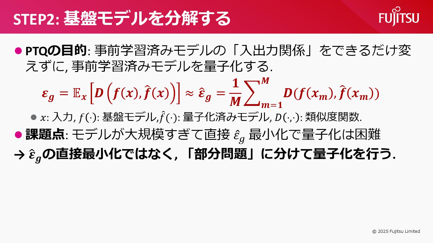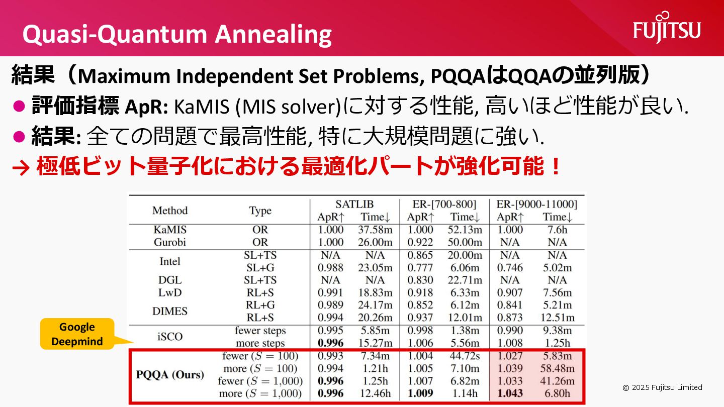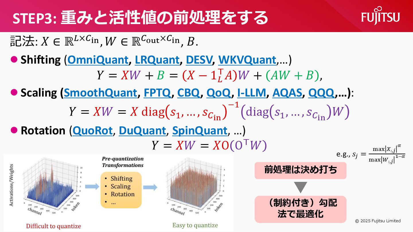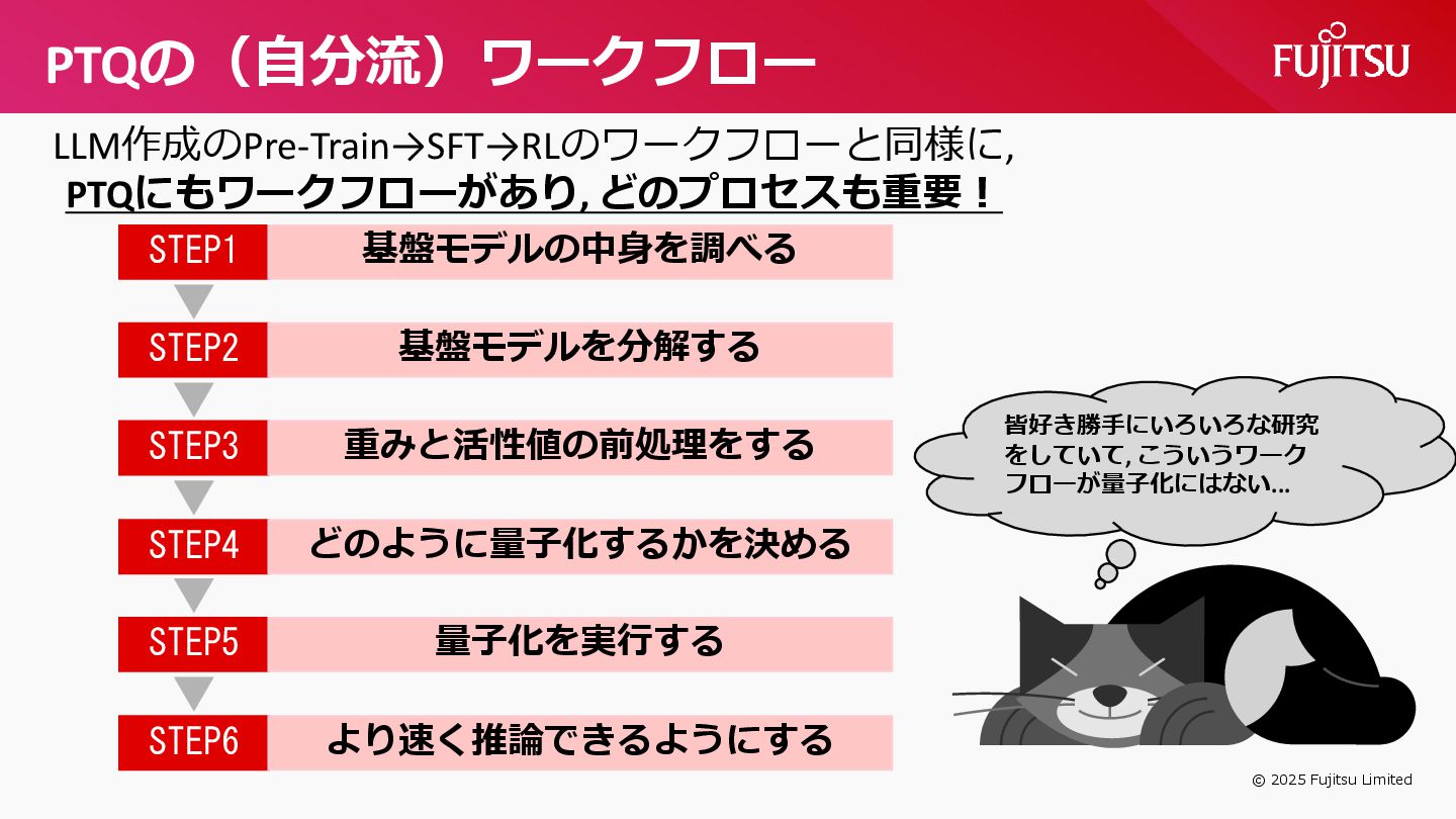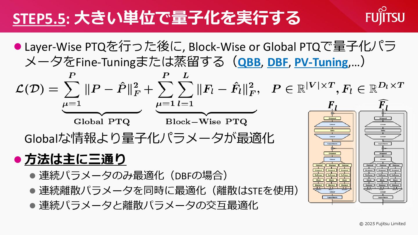 近年, LLM(Large Language Model)の大規模化に伴い, 推論速度の低下, メモリ使用量の増大, および電力コストの上昇といった課題が顕在化している. これらの課題に対処するため, 実数表現を離散化し計算効率を向上させる量子化技術が注目されている. しかし, LLMの量子化において, 極低ビット量子化の実現は困難であることが報告されている. 我々はこの課題に挑戦し, 1bitの極低ビット量子化であっても標準ベンチマーク上で平均90%の性能を維持することに成功した. その成果は, 最近のプレスリリースにて報告している. 本講演では, この成果に至るまでの研究ロードマップを示すとともにLLM量子化のワークフローおよび最新動向を体系的に概観する. さらに, 我々が開発した独自技術である量子化誤差伝搬(Quantization Error Propagation: QEP)および疑似量子アニーリング(Quasi-Quantum Annealing: QQA)の設計思想とその効果を簡単に説明する. そして, 最後に1bit量子化の先にある持続可能な推論基盤への展望を提示する.