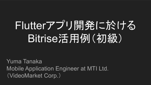 Flutterアプリ開発に於ける Bitrise活用例(初級) Yuma Tanaka Mobile Application Engineer at MTI Ltd.