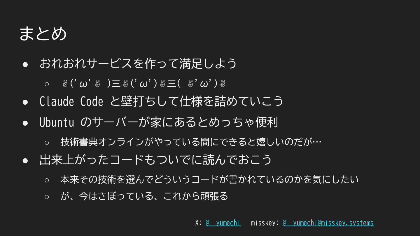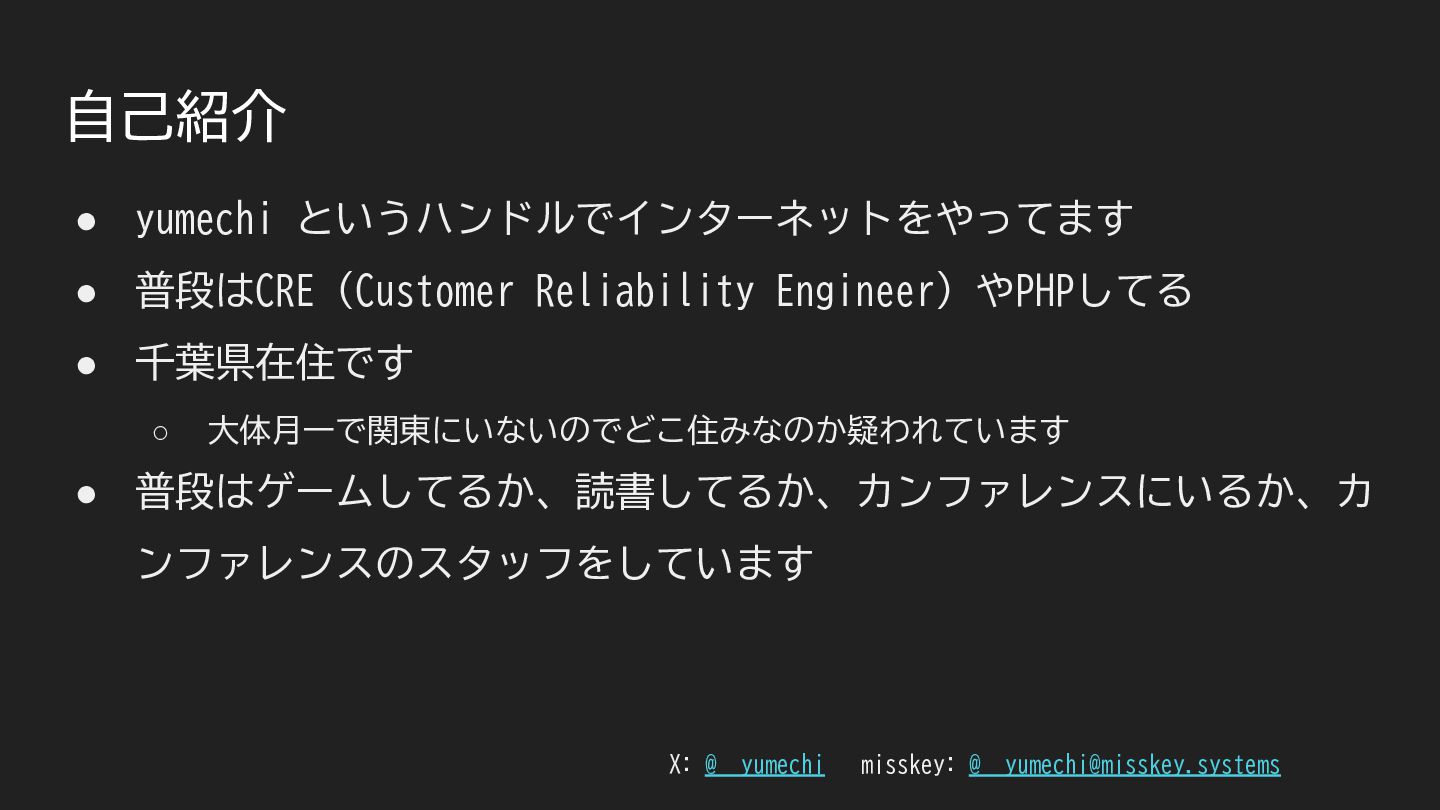 こちらで飛び入りLTをした時のスライドです。